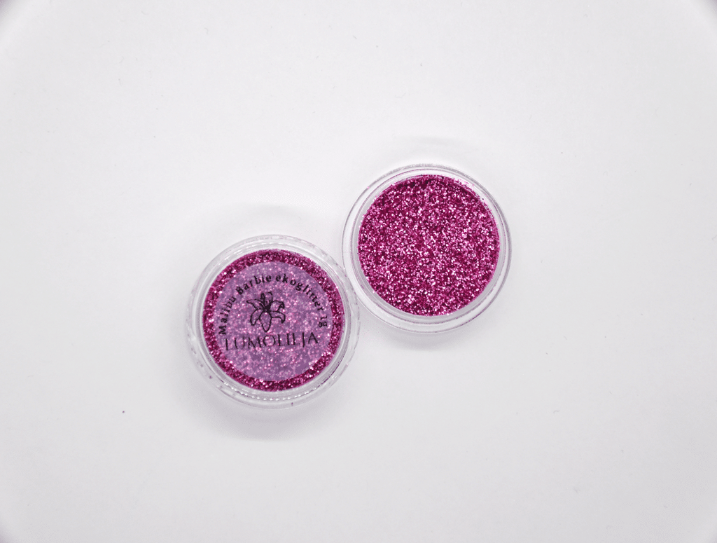 Ekologinen biohajoava glitteri, joka on valmistettu kasviselluloosasta.