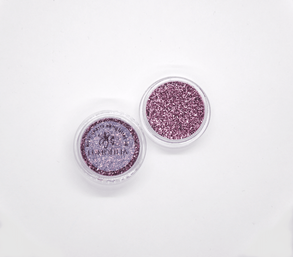Ekologinen biohajoava glitteri, joka on valmistettu kasviselluloosasta.