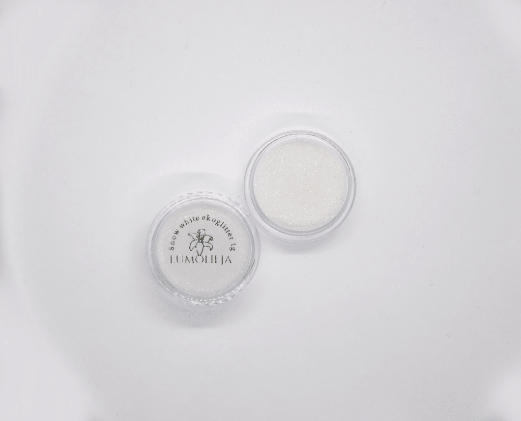 Ekologinen biohajoava glitteri, joka on valmistettu kasviselluloosasta.