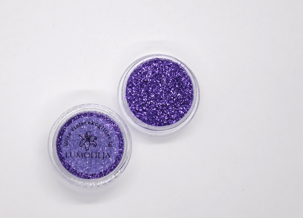 Ekologinen biohajoava glitteri, joka on valmistettu kasviselluloosasta.