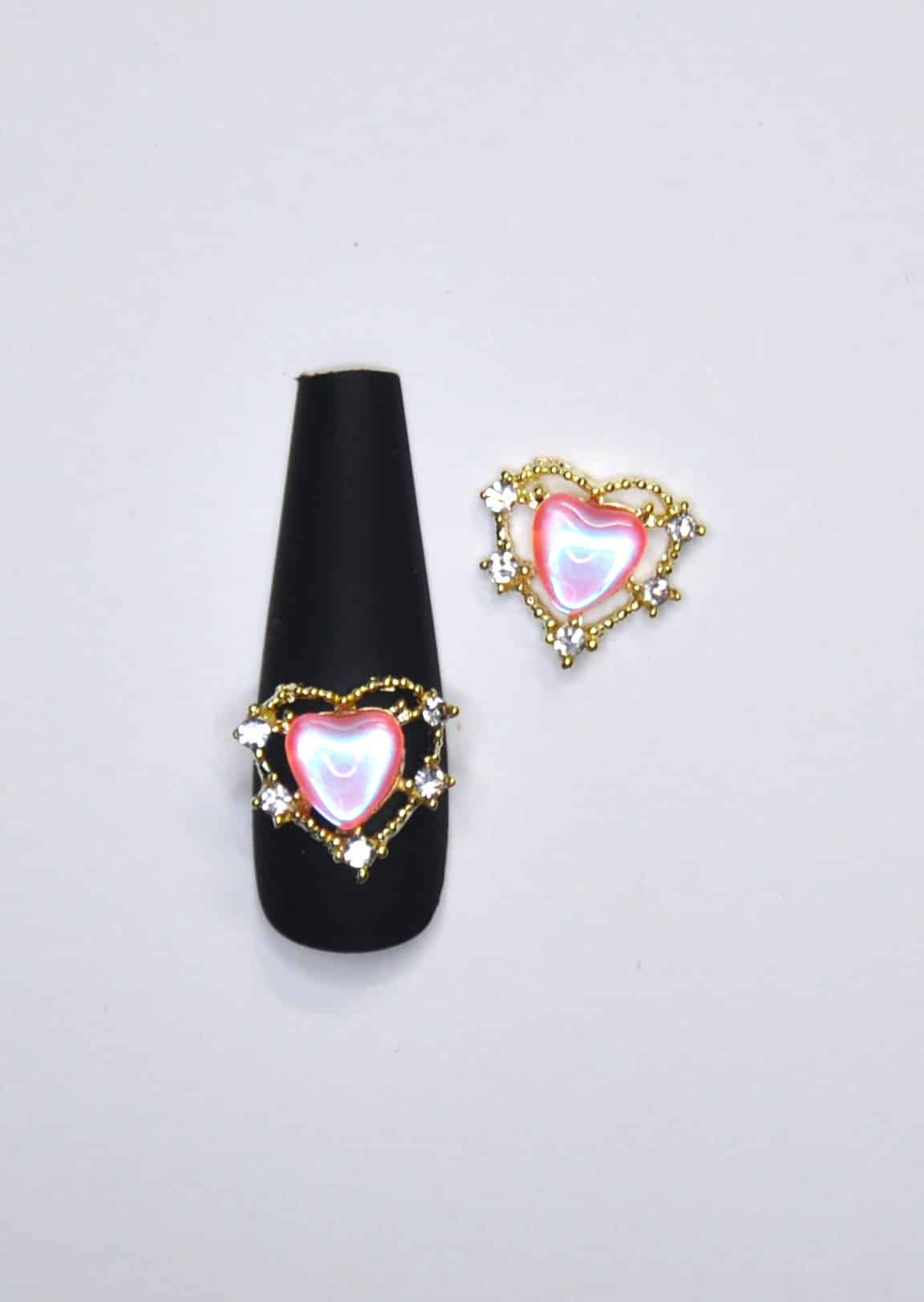 / Kynsikoru sydän vaaleanpunainen/kulta 2kpl